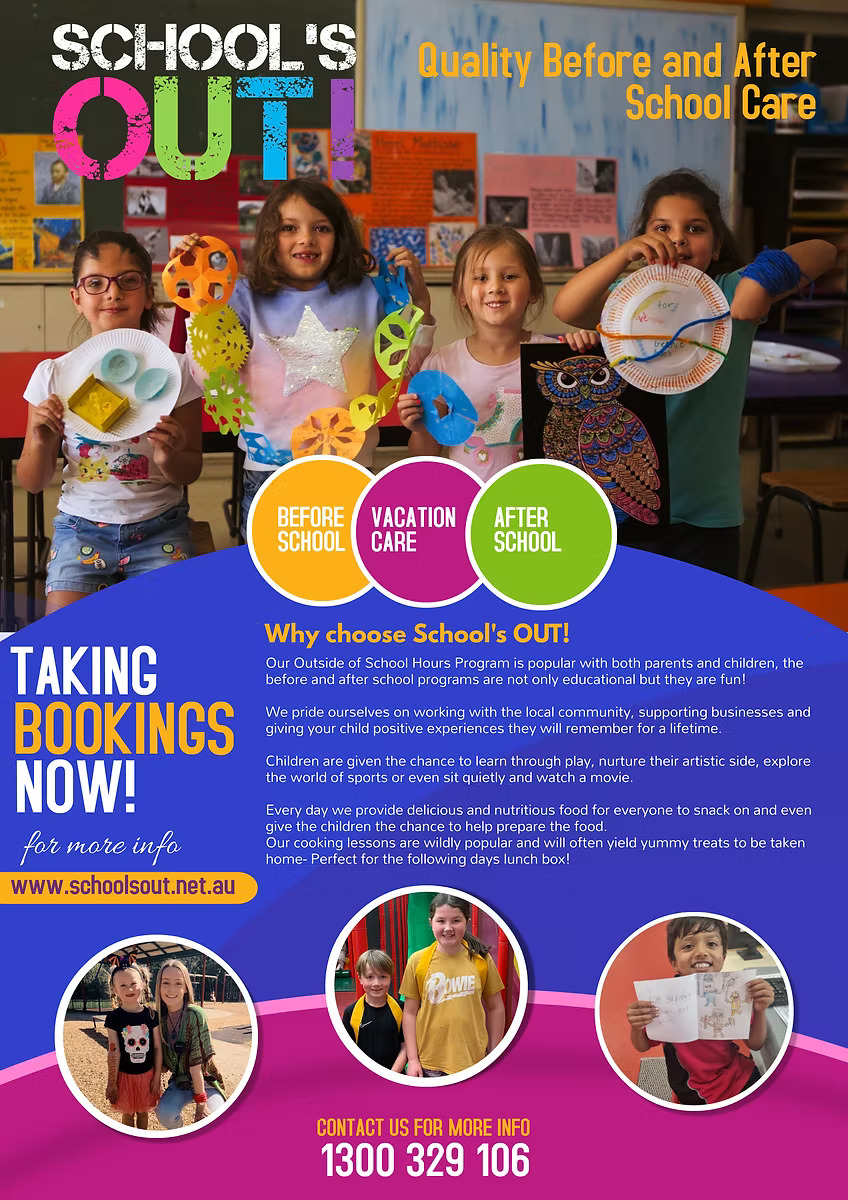 Children are given choices and encouraged within the process of decision-making. Daily our experiences are provided within a flexible environment to allow the participation of all regardless of ability. Emphasis will be placed on problem solving skills, along with other life skills that impact greatly upon this age group. Our professional, caring staff will provide continuity in a service that not only follows this statement but becomes like a second home to all children who enter our doors.