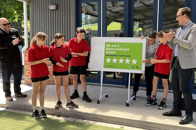 "This 5 Star school inspires sustainability and is always keen to support others in their sustainability work. By joining the Container Deposit Scheme and implementing a smart bin system, the community has reduced the amount of landfill it creates. The campus wetland and biodiversity outdoor learning area are the cherries on top of this small but powerful school of 53 motivated students." - ResourceSmart Schools Awards 2024